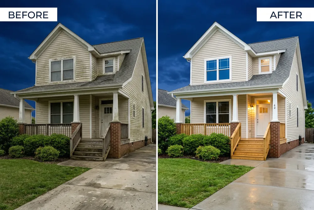 When larger clogs or stubborn grime appear, professional pressure washing with eco‑friendly solutions can quickly restore flow without harming nearby vegetation, further protecting the home’s foundation and appearance.